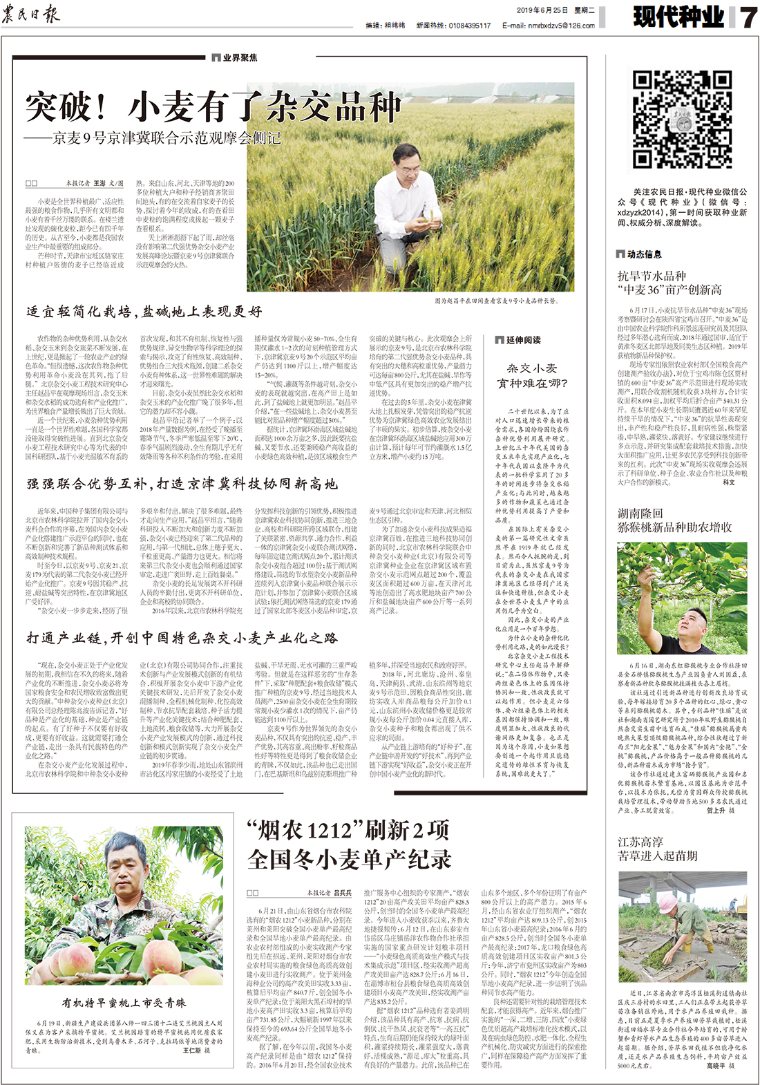 攜手并進 勇攀種業(yè)高峰-- 京麥9號領航雜交小麥產業(yè)化 發(fā)布時間:2019-06-07 發(fā)布作者:昌平農科