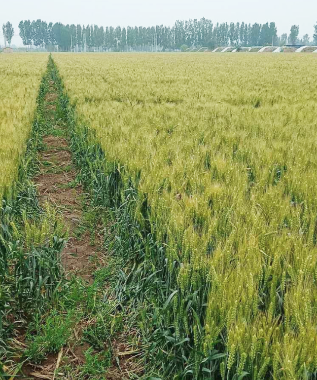 示范田位于天津?qū)氎娣郊仪f鎮(zhèn)駱家村,面積300畝。是2018-2019小麥種植季在天津地區(qū)5萬多畝雜交小麥中普通的1塊。