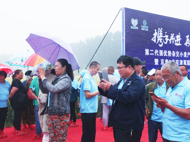 200多位一線人員同來見證。為雜交小麥點贊。舉起大拇指。雜交小麥就是好!雜交小麥就是棒!