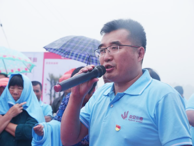 公司總經(jīng)理陳兆波在會場介紹雜交小麥在京津冀產(chǎn)業(yè)化推廣情況和環(huán)渤海濱海鹽堿地的大面積示范情況。