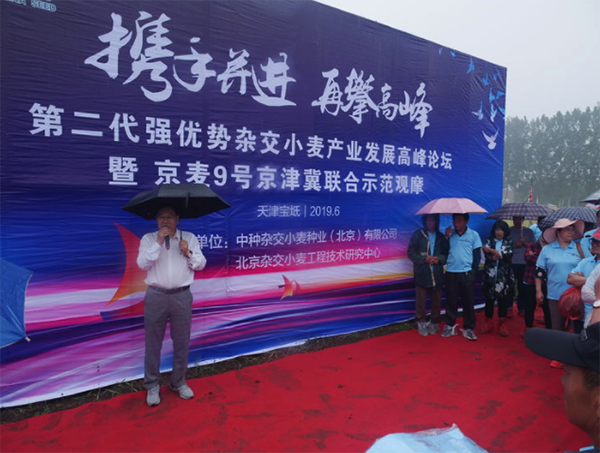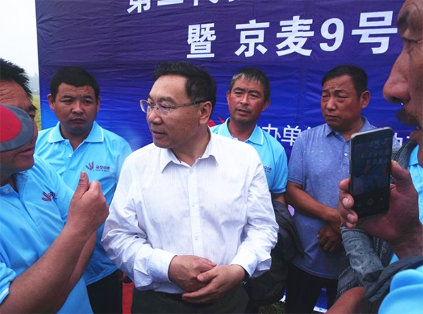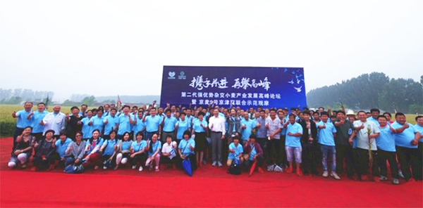 去年6月8日,強(qiáng)優(yōu)勢雜交小麥京麥9號品種發(fā)布會在河北廊坊隆重召開,4位院士參與了品種發(fā)布和產(chǎn)業(yè)化論壇。在會議上,中種雜交小麥公司總經(jīng)理陳兆波向全國喊出了“雜交小麥不再是傳說“的口號。一年過去,又到小麥成熟的季節(jié)。在高考的前一天,京津冀200多名種植大戶和經(jīng)銷商在天津?qū)氎?,一同見證京麥9號交上的滿分答卷。