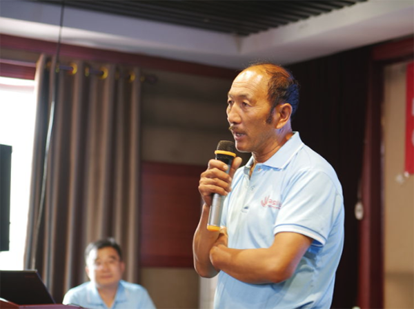 來自“雄安新區(qū)”的王永興講述雜交小麥在當(dāng)?shù)丶t薯田倒茬種植中優(yōu)勢。對紅薯種植化控殘留的抗性表現(xiàn),較當(dāng)?shù)爻R?guī)小麥種產(chǎn)量翻倍。